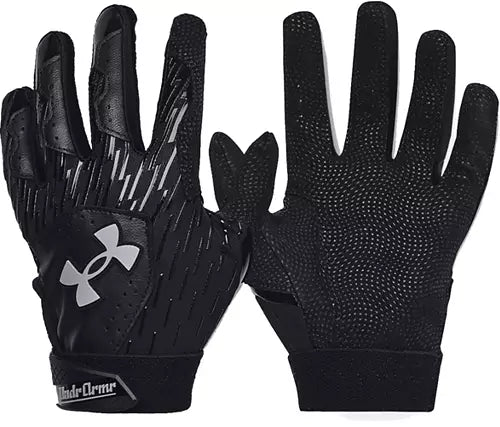These gloves give you the grip and protection you need every at bat, all season. Our signature HeatGear® fabric keeps your hands cool and dry, and the synthetic palms are more durable than traditional leather.